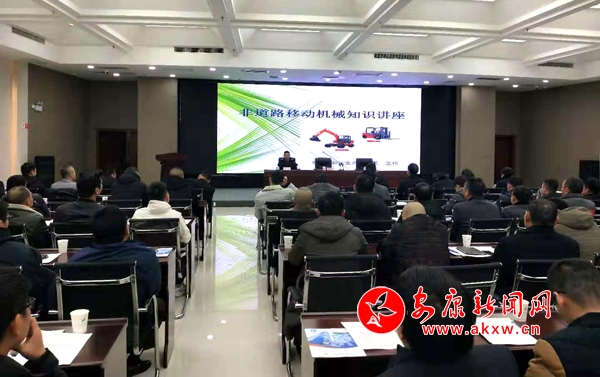 會議就《非道路移動機械知識》進行了宣講培訓,宣讀印發了《安康高新區生態環境局關于開展非道路移動機械尾氣檢測的通知》文件。現場為企業、建筑工地內非道路移動機械使用單位個人代表頒發了號牌和登記證書。