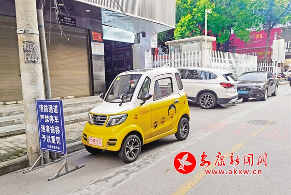 6月27日,安康城區金州南路報社巷違規停車。(記者 張喬 攝)