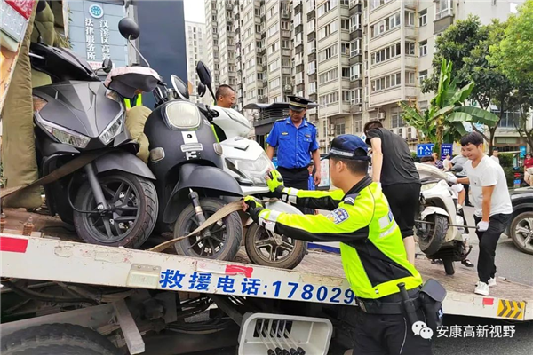 針對車輛亂停亂放等交通秩序管理問題,執法人員對花園大道、秦嶺大道、學府路、高新四路等主次干道沿線開展全天候整治,并向沿街商戶下發摩托車、電動車規范停車告知書。對占用人行道、消防通道、公交泊位等行為進行拍照取證后強制拖移。同時,向市民群眾發放文明交通宣傳彩頁,引導大家自覺摒棄交通陋習、遵守交通法律法規,安全文明出行。