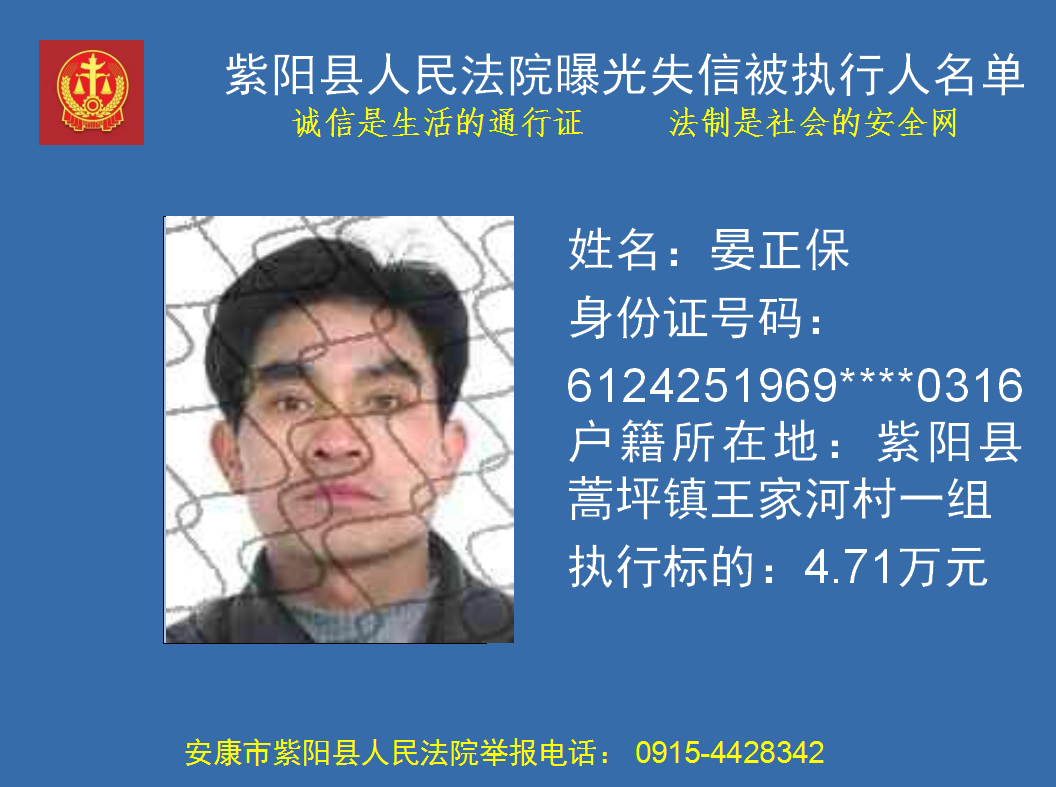 曝光失信 | 紫陽縣人民法院:關(guān)于敦促晏正保履行法定義務(wù)的公告