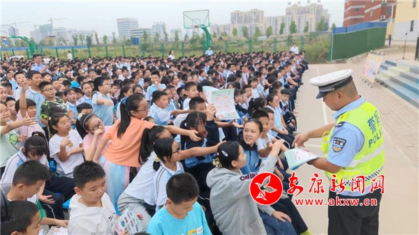 活動中,大隊民警結合轄區實際情況,首先通報了暑假期間全區道路交通安全,特別是涉及中小學生的典型事故案例,以身邊的事故教育身邊的人,以案說法、以案為鑒,希望同學們從中汲取深刻教訓,遠離交通事故危害。其次,民警針對中小學生上下學出行特點,以“守法規知禮讓、安全文明出行”為主題,通過擺放宣傳展板、發放宣傳資料、以及互動問答等形式,圍繞學生正確走路、文明乘車、安全騎車幾個方面,向同學們宣傳講解日常交通安全常識,生活中出行應當注意的行為規范,發生交通事故后如何求助,教育引導同學們認真遵守道路交通安全法規,牢固樹立交通安全文明意識,做到知危險會避險,守法規知禮讓,真正提高安全防范意識和自我保護能力。