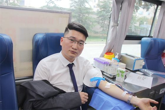 團員青年代夏江波笑著說道:“青春獻熱血,挽臂顯擔當,希望更多的青年團員參與進來,獻出我們自己的一點血,幫助更多需要的人,讓更多的人身體健康。”