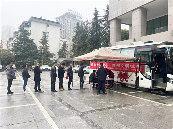 當天,市政府集中管理辦公區國土資源信息大廈同步進行無償獻血活動。?