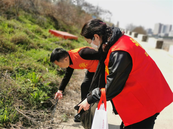志愿者們在漢江邊開展生態環保、垃圾分類宣傳,并清理了河道邊的空水瓶、白色垃圾、煙頭等垃圾。