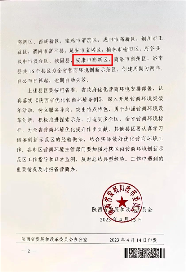 安康高新區獲批陜西省首批“營商環境創新示范區”