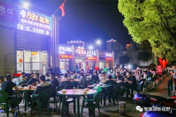 逛累了之后,美食之旅隨之開啟,除了各酒店餐飲可享受安康特色美食外,小吃夜市也成了市民游客在高新區饕餮一頓的不二選擇,走進美食街,燒烤、火鍋、小龍蝦等特色美食讓人目不暇接。華燈初上,商家已進入滿載狀態,招呼聲、碰杯聲此起彼伏,店里、店外座無虛席,一桌桌市民游客享受著擼串啤酒的假日自在時光,夜經濟在這個“五一”進一步激發消費的同時,也帶回來了人氣和煙火氣。
