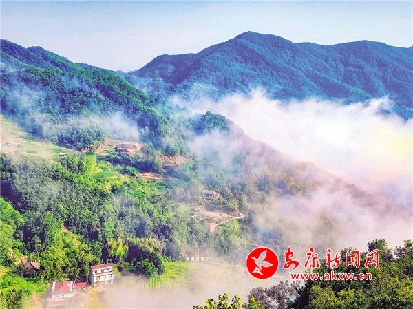 霧在山崖,白茫茫,棉花般鋪開,太陽高高掛在云海之上,青峰若隱若現,車鉆云穿霧,人飄然若仙,撲哧驚飛的鳥兒,在樹梢上撒歡。