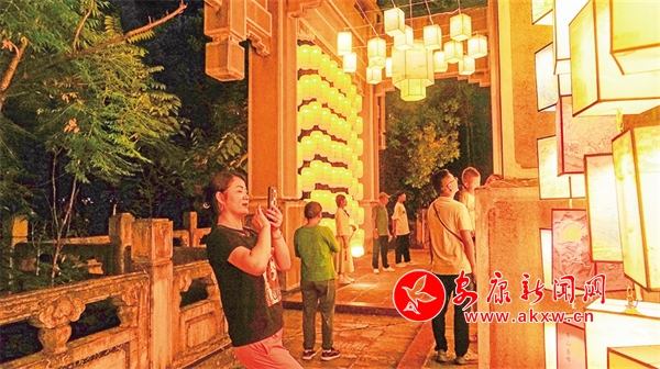 在安瀾樓南側,刻有金州八景的燈籠高高懸掛,穿上漢服,提著燈籠,走向瀾上燈會,感受花燈如晝。移步廊道,徜徉安瀾夜市,感受煥然一新的公園氛圍、琳瑯滿目的文創精品和目不暇接的特色非遺。