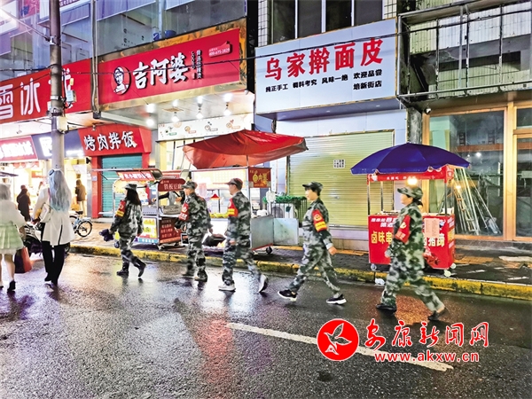 10月1日,志愿服務隊在中心城區培新街開展夜間巡邏。潘潤生 攝