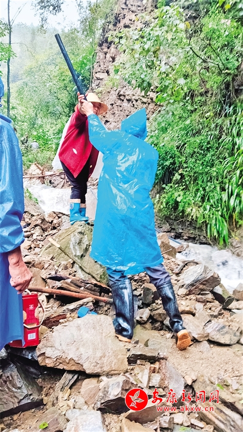 10月5日,紫陽縣高橋鎮雙龍村村“兩委”干部和村級水管員堅守崗位,排查搶修飲水管道。胡波 田自國 攝