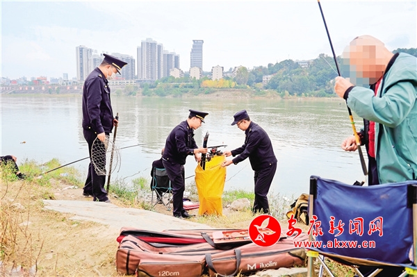 10月17日,漢濱區農業農村局在漢江沿岸開展“十年禁漁”執法宣傳活動。執法人員通過沿江宣傳禁漁政策、發放禁漁資料、收繳違規漁具等形式,向群眾宣傳和解讀長江“十年禁漁”知識和《中華人民共和國長江保護法》等相關規定和政策,營造共同保護漢江生態環境的良好氛圍。周濬 攝?