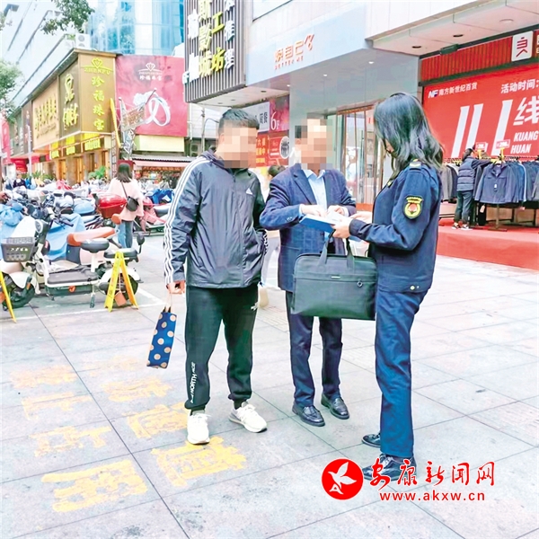 11月6日,漢濱區城管執法人員在金州路開展糾治隨地吐痰專項執法,對隨地吐痰人員提示改正,并根據相關規定進行處罰。