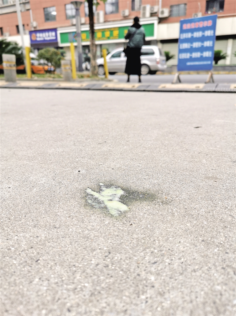 12月12日,安康中心城區大橋路育才路十字附近,存在隨地吐痰現象。
