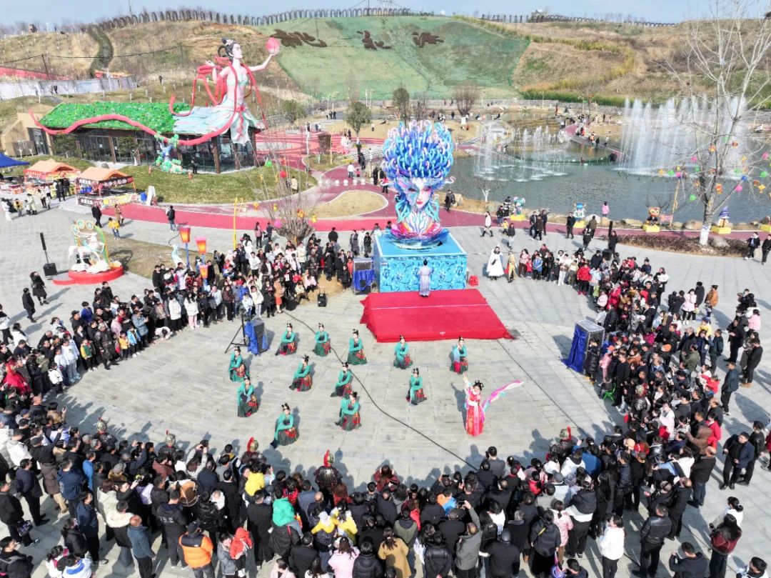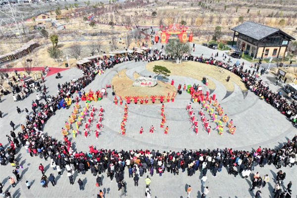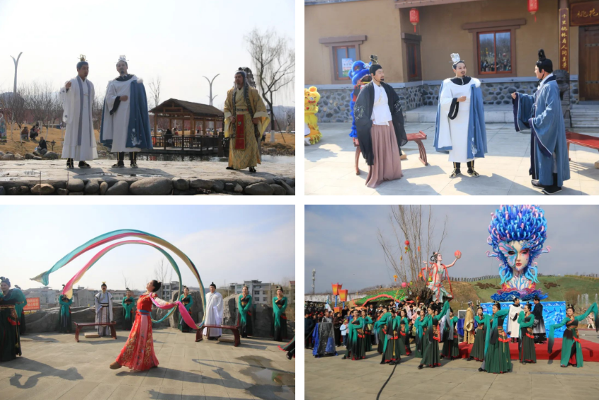 豐收大秧歌、龍騰腰鼓隊、喜慶蓮響、彩船、花轎大聯(lián)歡、社火、小場子戲等精彩的傳統(tǒng)民俗節(jié)目在桃花源相繼上演。新穎的編排、精彩的表演,令現(xiàn)場游客大飽眼福,叫好聲、喝彩聲此起彼伏。當(dāng)天近25000余名市民游客前往桃花源觀看表演、打卡游園,處處洋溢著“歡歡喜喜過大年”的節(jié)日氣氛。