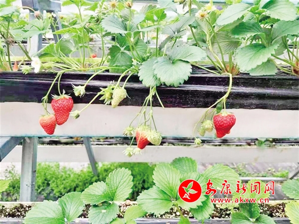 “‘高架草莓’不僅節(jié)約人力,能讓大家冬天也能吃到鮮甜可口的草莓,也不用擔(dān)心降溫、大雪等天氣影響。懸空種植還方便工人以及游客進行采摘,許多周邊群眾慕名而來,體驗‘開心農(nóng)場’。”園區(qū)技術(shù)員曹峰說。