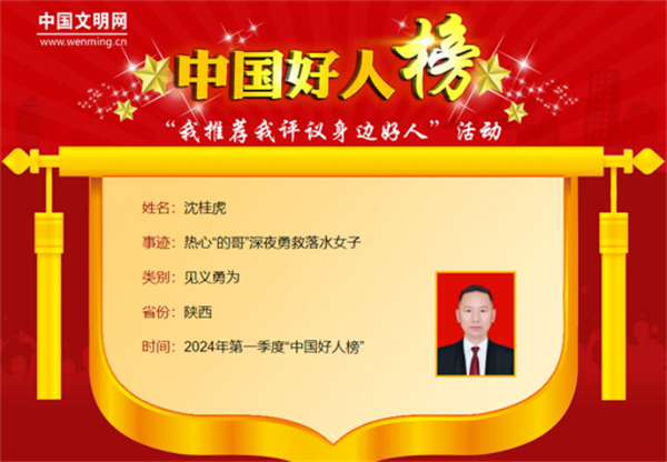 4月18日,2024年第一季度“中國好人榜”發布儀式暨全國道德模范與身邊好人現場交流活動,在江西省九江市舉辦。我市沈桂虎光榮上榜。