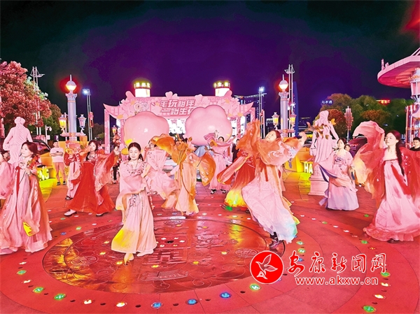 演職人員在漢城國際商業(yè)街排練節(jié)目,迎接即將到來的“五一”假期。記者 潘潤生 攝?