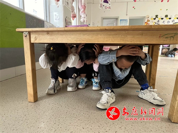 隨著室內(nèi)避震警報響起,防震演練正式開始,老師們迅速啟動《防震疏散演練應(yīng)急預(yù)案》,各班教師立即引導幼兒盡量躲避在室內(nèi)墻根、墻角或床、桌等相對堅硬的家具與三角區(qū)避震空間避險,引導幼兒身體彎曲,降低身體重心,盡最大努力保護好頭部。逃生疏散中老師不斷提醒幼兒們不要擁擠,手保護頭部、彎腰,迅速且有序沿著指定疏散路線撤離到安全區(qū)域,同時檢查是否有掉隊的孩子,確保每位幼兒安全撤離。