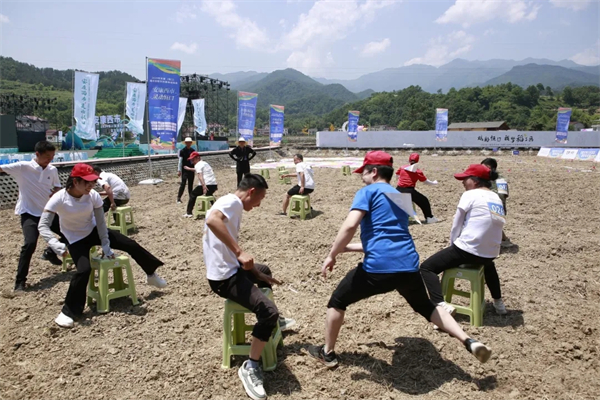 據(jù)悉,本次活動舉辦地分別為溪映明月·南山云見片區(qū)和民族風(fēng)情·運(yùn)動休閑片區(qū),共開展了“背簍投籃”“稻田摸魚”“田園拔河”等活動,另有“搶凳子”“跳大繩”等5個團(tuán)體賽項(xiàng)目吸引了大量群眾參與體驗(yàn)。 “踢毽子”“抓石子”“斗雞、跳繩、抽陀螺”,彰顯農(nóng)活絕技的“拋秧苗、滾鐵環(huán)、趣味插秧賽”等8個個人項(xiàng)目,將田園風(fēng)光里的郊外農(nóng)民趣味運(yùn)動會推向高潮。