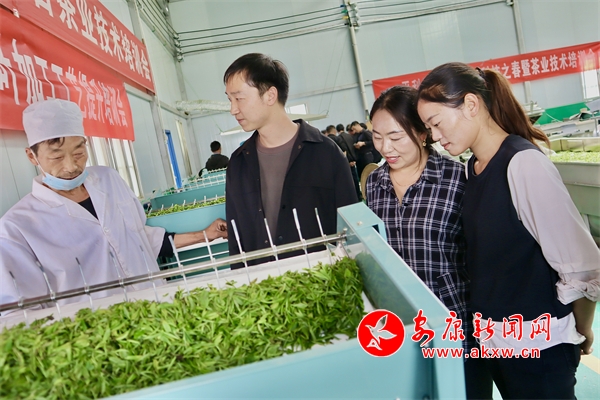高翔“接單”后,一邊聯合鎮農綜站同縣上的茶技中心對接,聘請專家到鎮指導,一邊積極向鎮上的茶飲企業和茶農宣傳,組織大家前來聽講座、現場觀摩,有了高翔的“搭橋”,正陽鎮茶技培訓如期順利舉行,活動當天,茶葉加工場里熱鬧非凡,30余名茶企負責人和茶農圍著專家現場提問,茶技中心專家親自示范、現場解答,大家聚精會神、虛心請教,通過系統的理論學習和動手實踐,進一步掌握和提升了茶園管護和茶葉加工的技術。