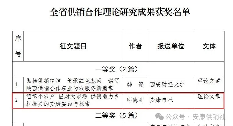 按:本文系安康市供銷合作社黨組書記、理事會主任邱德剛署名理論文章,立足供銷助力鄉(xiāng)村振興的安康實踐與探索,深入闡述了“組織小農(nóng)戶應(yīng)對大市場”的內(nèi)在邏輯,把群眾“組織起來”投身經(jīng)濟(jì)合作的實踐方法,在助力鄉(xiāng)村振興、推進(jìn)共同富裕實踐中探索出一條可復(fù)制可推廣的典型經(jīng)驗,其理論內(nèi)涵、實踐邏輯為在推進(jìn)鄉(xiāng)村振興中更好發(fā)揮供銷社的獨特優(yōu)勢和重要作用提供了有益參考,具有較強(qiáng)的指導(dǎo)意義。該文在中華全國供銷總社和陜西省供銷總社“薪火相傳七十載,砥礪奮進(jìn)新時代”主題征文中獲評“全省供銷合作理論研究成果一等獎”。