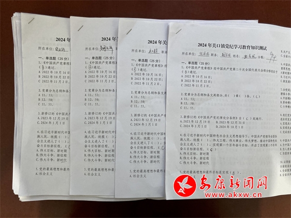 一張答卷驗成果,以考促學明黨紀。關口鎮組織全體鎮村干部,開展“黨紀學習教育知識測試”,全體人員認真書寫答卷,進一步檢驗學習成果,不斷加深對《中國共產黨紀律處分條例》的理解和領悟,增強學紀、知紀、明紀、守紀的自覺性,努力實現以考促學、以學促廉目標。