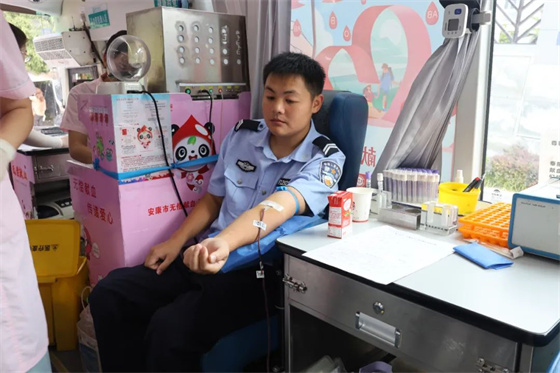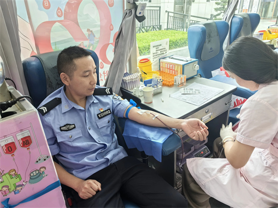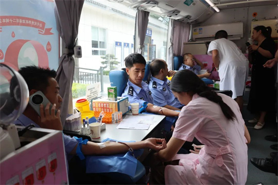 驕陽似火,愛心傳遞。參加此次獻血活動的民輔警表示,無償獻血是一種愛心奉獻,也是一種社會責任。能盡自己的微薄之力,為生命接力,是一次非常有意義的活動,今后工作中,他們將繼續積極投身到無償獻血志愿活動中來,用熱血傳遞愛心,用熱血踐行誓言,用熱血擔當使命。?