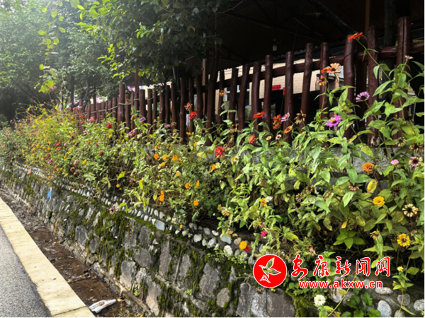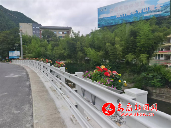 在廣貨街集鎮,橋梁欄桿及院墻上定制的75個花盆已經安裝到位,900個擺放花盆也陸續開始移栽布景,紫薇、繡球、月季、串串紅等鮮花競相開放,十分美麗。為確保花朵成活率,安排專人進行日常管護,按需澆水。走到其他村(社),依然可以看見身穿紅馬甲的志愿者們在清除路邊雜草,打掃衛生,在重點段落栽種適宜花朵,整個鎮域內,花朵競相開放、香氣四溢。