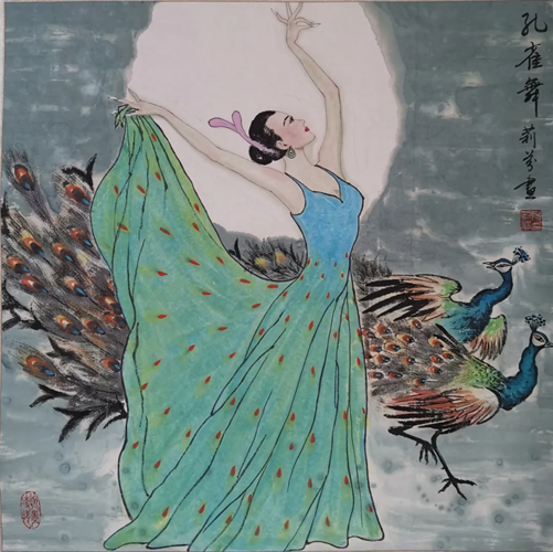 解大姐是陜北人,性格開朗、直率,說話中間或帶出一些濃重的陜北口音。雖說她主業(yè)從于政界,但她微笑的背后卻潛藏著不可掩飾的藝術(shù)天賦,揮發(fā)著令人奪目的藝術(shù)才情。繁雜的政務(wù)工作之余,她創(chuàng)作不輟,堅持不懈,居然在多個藝術(shù)門類收獲頗豐,好評連連。寫小說,她寫出幾十萬字的長篇出版發(fā)行;寫劇本,竟拍成了電影予以公映;學(xué)國畫,亦讓藝術(shù)界的大咖贊口不絕。我雖不才,空有浮名,但深耕藝界多年,對于其中的好賴還能分出一二。我感到,一個人的人品和藝品基本一致,解大姐的藝術(shù),是扎根于她熟悉的陜北大地的藝術(shù),是生長在山峁峁上經(jīng)歷風(fēng)霜雨雪的藝術(shù),就像那陜北倔強的疙瘩柳,散發(fā)著對土地對生活的親近和熱情,對人生價值實現(xiàn)的不屈和追求。看到她的國畫新作,有陜北剪紙等民間藝術(shù)的滋養(yǎng)和影響,真切而樸實。她的飛天人物系列,泥古而不落窠臼,使我想到疙瘩柳條隨風(fēng)擺動的婀娜風(fēng)姿,溫溫潤潤,令人遐思和向往;她的花鳥畫作,使我想到陜北山野一片蒼茫之間,一朵兩朵盛開的山丹丹花,嬌艷得令人不忍觸手;她的山水畫作,又猶如陜北山原上嫩黃的棗花,洋溢著撲面而來的質(zhì)樸、清新和率真之氣。
