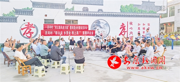 在今年的每一次道德評議會上,月河村干部和鄉賢能人都積極宣講村莊發展規劃以及孝善行為的重要性,宣講團成員詳細解讀孝義文化,帶動村民踴躍參與“五美庭院”創建。在此過程中,“說論亮”道德評議制度有效運行;“群眾說”讓大家暢所欲言,把村里的大小事擺到臺面;“鄉賢論”借助鄉賢的智慧與威望分析問題、化解矛盾;“榜上亮”則讓好與壞一目了然,便于群眾監督。特別是,為激勵村民見賢思齊,學典型、爭先進、樹文明,月河村利用孝義文化長廊、宣傳欄、道德講堂等載體,把評選出來的道德典型事跡“上榜、上墻”,形成示范引領效應,讓良好道德品質看得見、摸得著,進一步激發村民的主人翁意識,讓移風易俗的觀念深入人心。