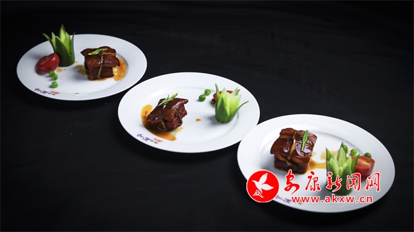 “陜南淡水魚餐飲暨‘贛義鑫杯’烹飪技能大賽”是張顯峰走出去學習交流檢驗自己菜品研究成果的平臺。在準備本次比賽菜品時,他選用了紫陽縣最好的食材“富硒鱘魚”、花鰱魚,土黑豬五花肉及羊肚菌等蔬菜,精心制作了兩道菜品,第一道菜品是紫陽茶香宴中的主菜——茶香鱘龍。這道菜擺盤高雅,肉質細膩,口味鮮美,茶香與淡水魚的完美結合,讓人仿佛置身于清新的茶山之間,品味著大自然的饋贈。