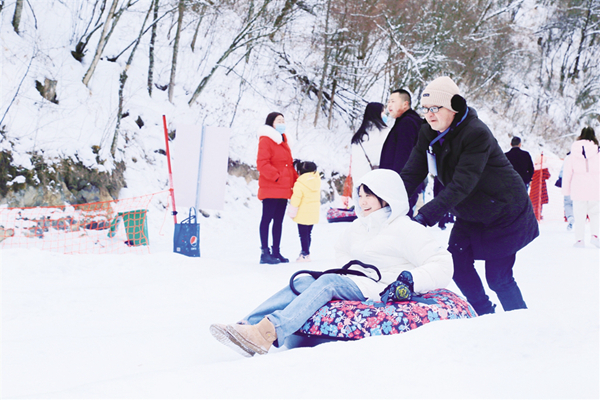雪場上,滑雪、嬉雪、賞雪等多種冰雪項目讓偌大的滑雪場充滿笑聲、歡呼聲,景區內熱鬧非凡。