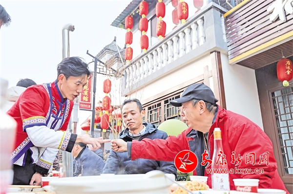 長街里的宴席上坐無缺席;一道道精美的庖湯佳肴陸續(xù)上場,席間,賓客們喝著美酒、品著美食、看著節(jié)目,歡聲笑語不斷。臺上的節(jié)目精彩紛呈,讓賓客們目不暇接,不時報以熱烈掌聲,充分展現(xiàn)了石泉縣深厚的文化底蘊和獨特的民俗文化。不少外地游客慕名而來,帶著親友來到石泉,親身感受特色庖湯宴。豪邁的秦巴漢子激情劃拳喝酒,在場的游客市民都沉浸在新年的喜悅中,舉杯暢飲,現(xiàn)場熱鬧非凡,滿滿年味十里香飄……