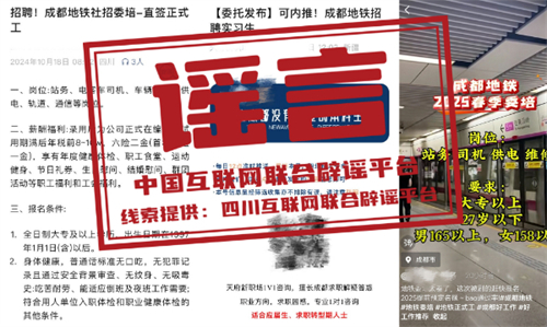 謠言:成都地鐵招聘“提前預定名額”?濟南地鐵校園招聘有“真題”?