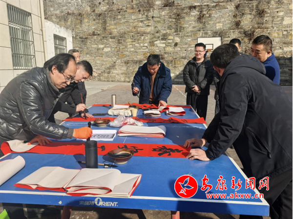 1月20日,旬陽市司法局、旬陽市文聯、旬陽市書法協會、旬陽市楹聯學會組織書法家,走進銅錢關鎮,為廣大群眾義寫蛇年喜慶春聯,獻上新春祝福。活動現場,書案一字排開,書法家們揮毫潑墨,以“福”字迎新開筆,行、隸、楷等多種筆體各顯神韻。此次活動義寫春聯及福字500余幅,為現場群眾送去一份別有新意的新春禮物和美好祝愿。(通訊員 石佩)?