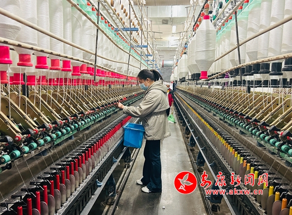 在陜西永豐特種紗線有限公司的生產車間,工人們忙碌地穿梭于機器間,雙手不時調整著紗線。該公司位于澗池鎮軍壩村,是一家主要從事包芯紗研發、生產和銷售,紡織原料、面料購銷和紡織設備進出口的現代化企業。