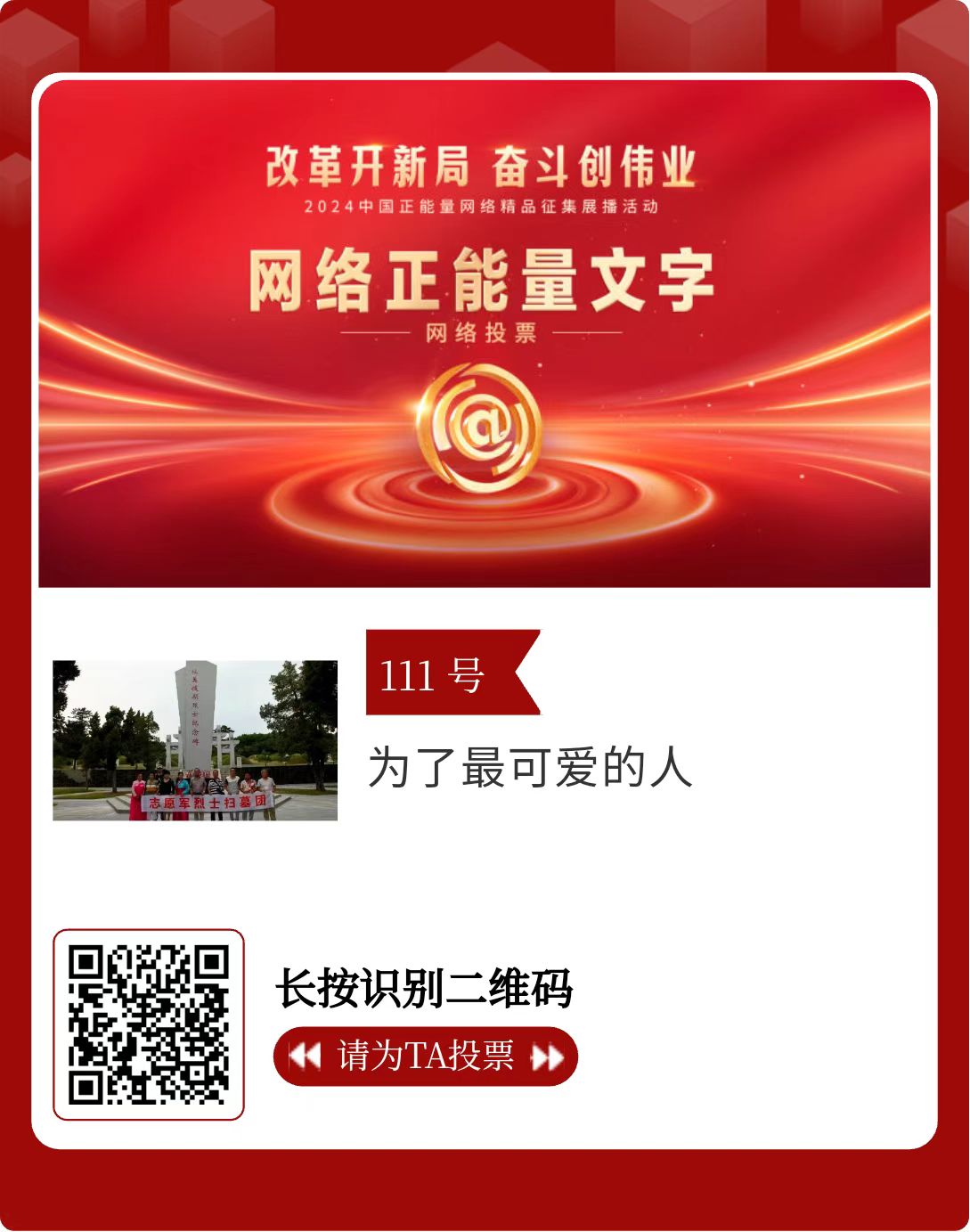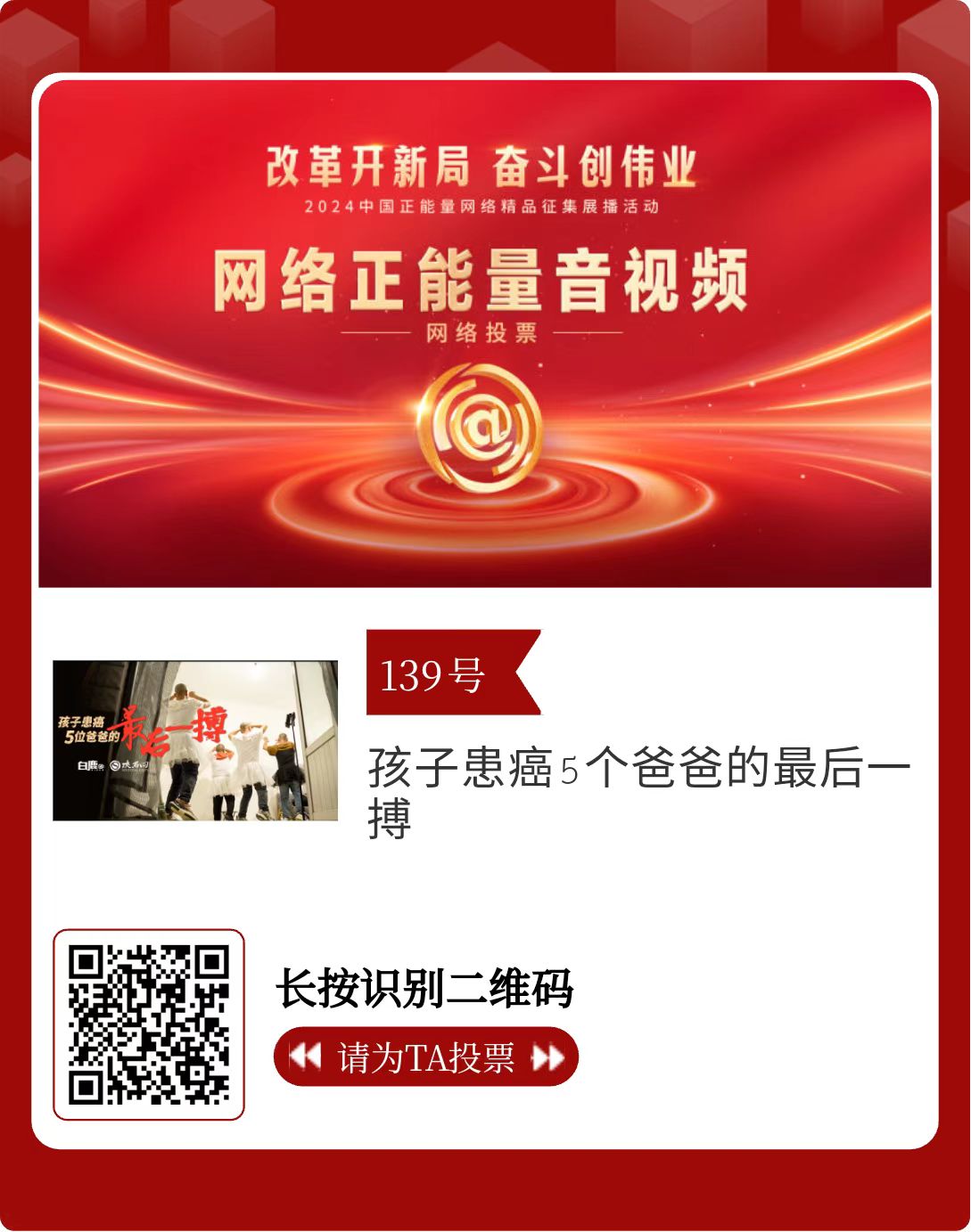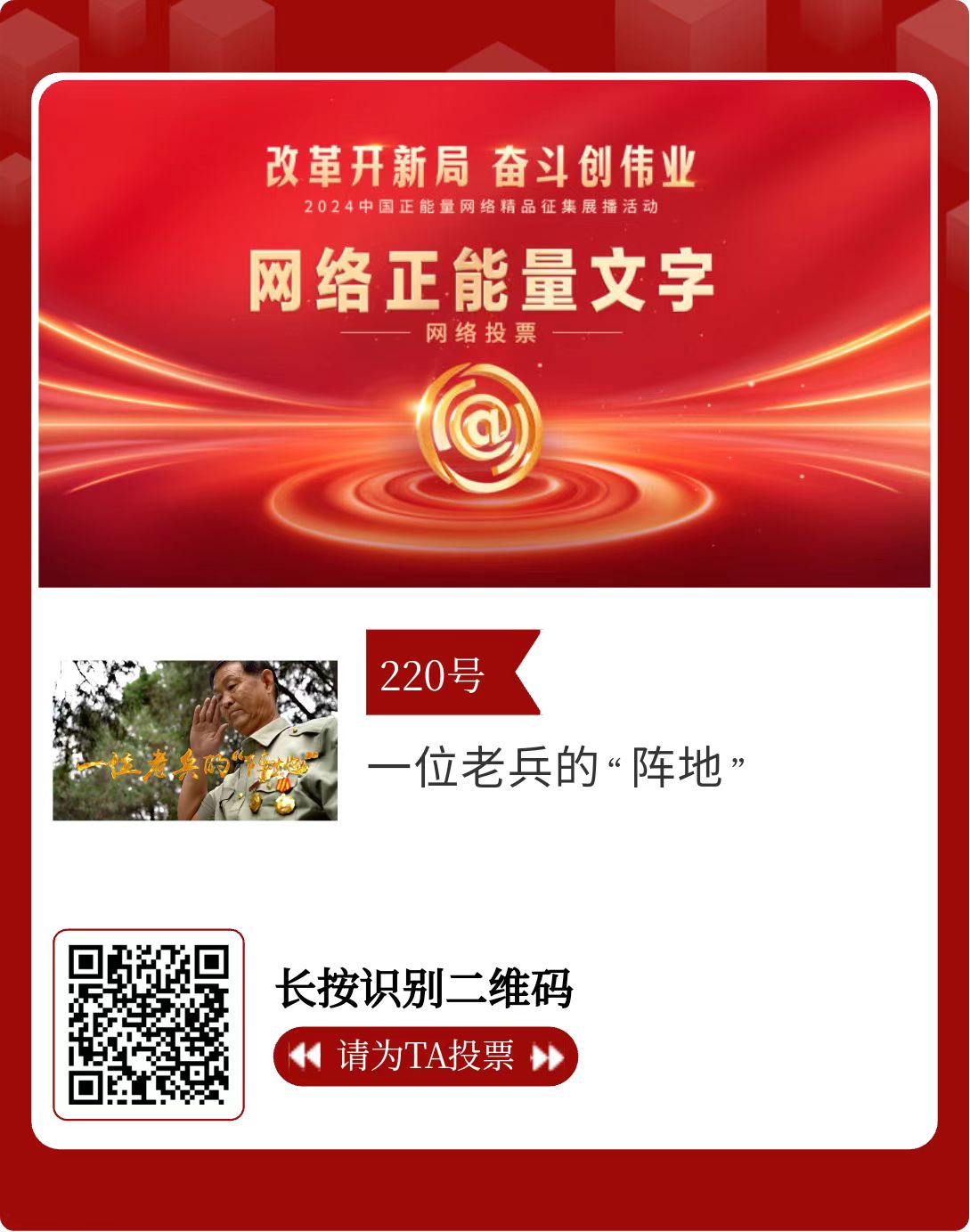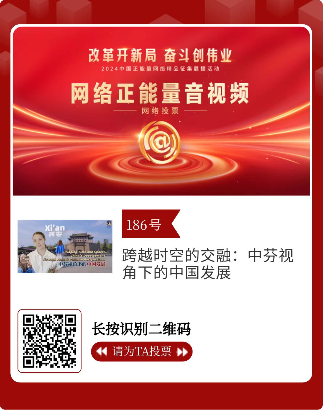 改革開新局,奮斗創偉業。由中央網信辦主辦的2024中國正能量網絡精品征集展播活動今天啟動網絡展播投票。
