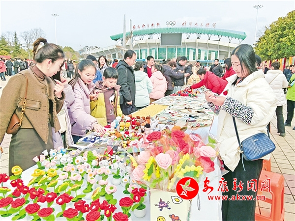 今年春節期間,胡運翠接到了漢濱區文化館的電話,邀請她去金州廣場非遺展示區,展示她的手工編織作品,同她的作品一同列入展示的還有花饃、糖畫、手工竹節人等。她精心準備了許多手工編織品,在金州廣場右側,胡運翠的攤位前圍滿了小朋友,他們被這些栩栩如生的小動物深深吸引,紛紛拉著家長購買。胡運翠一邊熱情地向顧客介紹自己的作品,一邊現場編織,嫻熟的手法引得眾人連連稱贊。