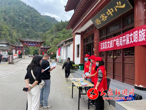 為增強游客的文明旅游意識,近日,漢濱區文旅廣電局組織志愿者們在雙龍景區現場向市民游客發放文明旅游宣傳折頁,宣傳講解文明旅游相關知識以及應當遵循的行為規范,引導游客有序排隊游玩。宣傳彩頁內容既包含了安康的歷史文化、自然風光介紹,也強調了保護環境等文明旅游具體要求,旨在引導每一位游客成為文明旅游的踐行者和傳播者,從自身做起、從小事做起,共展文明風采,共樹文明形象,共享文明旅游好風景。(漢濱區委宣傳部供圖)?