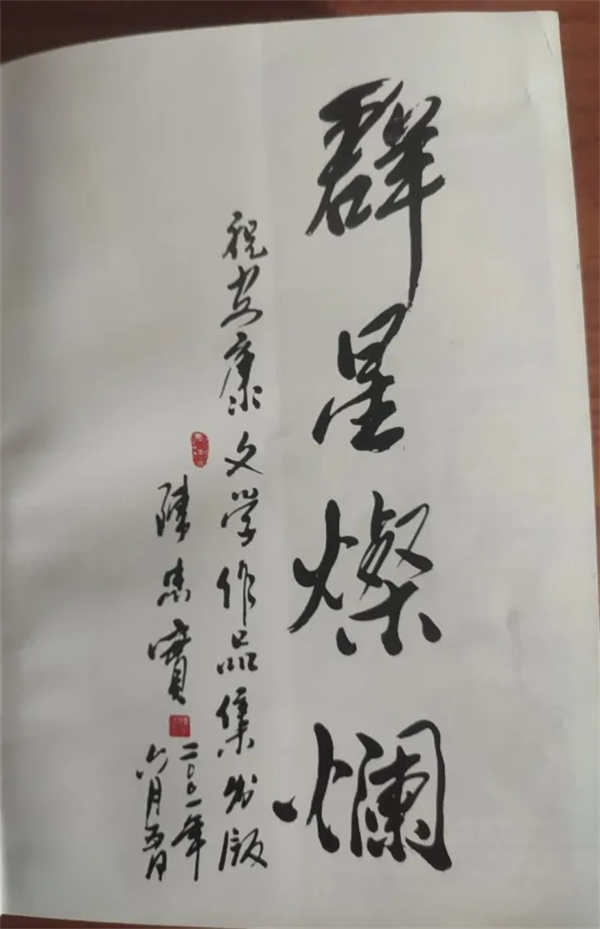 2001年5月下旬,我主編的《安康作家優秀作品選》基本成型,編錄的有80多萬字,包括本市的中國作協、省作協、市作協會員180多人,原稿厚厚的一尺多高一墩了。出版前我想得有個壓軸的,便把一大包作品復印件不打招呼、就徑直寄給陳忠實,附信說請他寫個序。大約一個星期就收到陳忠實回信,說我做了件好事、有的地市還沒有這樣弄過;說他太忙,作品倒是大概看了、安康他知道的作家都在里面,還行。但是太忙、實在沒有時間再仔細看,也就不好寫序,務必諒解……末了,那寄給他的復印件都沒退,倒是給寄來了橫的、豎的,長短大小不一的、毛筆書寫在宣紙上的幾種形式的題詞“群星燦爛——祝安康文學作品集出版 陳忠實 二00一年六月五日”,每張題詞的宣紙還折疊得棱角分明、上下對稱。收到后,我的心里重騰騰的,想陳老漢下的功夫不小哩,只怕不比花費一兩個小時、走馬觀花地寫個洋洋灑灑的三兩千字的序省事!《安康作家優秀作品選》當年出版后,有了反響、也有了結余。我專門委托在西安一雜志社打工的本土青年作者洪曉晴去西安找陳忠實,送上3本書、并送上500元潤筆費。不料、陳忠實見了書高興,但堅決不收這500元,并又給我來了一封信,解釋說文人都窮、出個書不容易哩!最后,信的結尾,陳忠實又幾乎是批評我,說我得有自己的創作哩!看來,陳忠實固然支持和欣賞編輯這種區域性系統性的作品集,但他更希望看到文學作者創作出具有個體生命體驗及其獨特感悟的作品,文學的靈魂和生命,畢竟是創造。