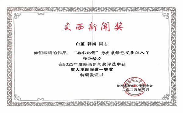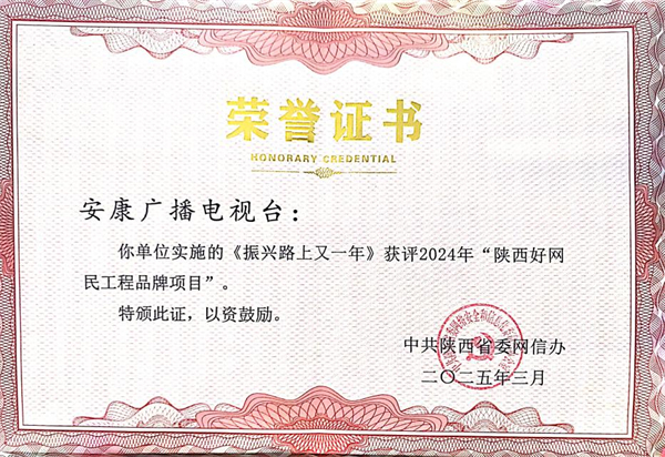 2024年,47件新聞作品榮獲省市新聞獎項,創歷史新高。其中,9件作品獲得陜西新聞獎,6件作品獲得陜西廣播影視獎,27部作品榮獲安康新聞獎,5部作品榮獲2023年度“宣傳安康”好新聞獎。在2024年陜西省“好記者講好故事”比賽中,榮獲一等獎和三等獎。胡玥同志榮獲陜西優秀新聞工作者稱號,郭青、王仁玉被評為安康市優秀新聞工作者。創編廣播劇《一路荊棘 一路繁花》,成功入選陜西省2024年度重大文化精品項目。創編的劇目《許你一個安康》,作為全省唯一一部由廣電機構投拍的微短劇,獲得省廣電局制作許可,在國家廣電總局備案,并列入國家重點網絡影視微短劇。《振興路上又一年》獲評2024年“陜西好網民工程品牌項目”。原創公益廣告《爭當文明養犬人》獲陜西省廣播電視作品扶持項目公益廣告一類作品。
