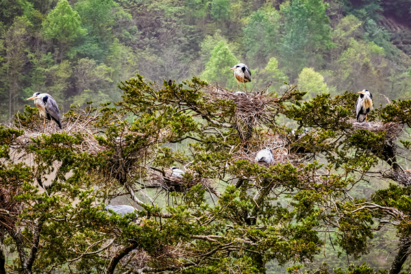 近年來,紫陽縣高橋鎮生態環境持續向好,吸引蒼鷺前來“安家”。 劉宗才 攝?
