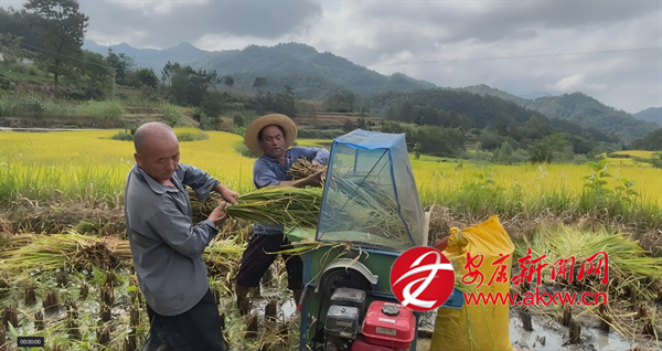 9月12日,走進迎豐鎮梧桐寺村的冷水稻田里,“轟隆、轟隆、轟隆……”的機器聲響徹田壩。一臺水稻收割機正在田里來回穿梭,一次性完成收割、脫粒、秸稈粉碎、除雜等工作,頃刻間一片豐碩的水稻便盡收機囊,隨后通過滾筒把谷子輸送到準備好的袋子中。村民們忙著轉運,金色的稻田中一派熱鬧忙碌景象。