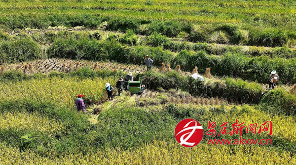 金秋時節,漢陰縣鳳堰梯田景區迎來了一年中最動人的季節。層層疊疊的梯田上,稻穗低垂、金黃遍野,農戶們穿梭其間,描繪出一幅忙碌而喜悅的豐收畫卷。(通訊員 文婷)