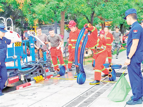 邱凱介紹,該鎮應急救援隊由鎮級救援隊、15個村級救援分隊和水上應急救援隊組成,共17支隊伍278人。“為了這次比武,后柳鎮收到通知后就積極籌備。兩個月里,參賽隊員除了到縣消防救援大隊接受專業培訓外,平時也堅持每周訓練。”邱凱指著場邊的灑水車說,“這輛灑水車是鎮上自己改造的,不僅成本低,也更適合鎮情實際,五層樓以上的救援也能覆蓋。?