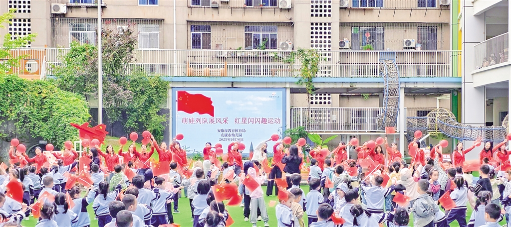 9月30日,安康市幼兒園舉辦“萌娃列隊展風采 紅星閃閃趣運動”國慶主題活動。 李生珍 攝