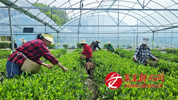 在胡家溝村康聚龍農業開發有限公司,40余畝高標準聯動茶葉大棚令人眼前一亮。“通過控制大棚內溫度、濕度、光照和空氣質量等因素,我們有效保障了茶葉生長環境,使茶葉品質更加穩定。”公司技術負責人介紹,“這種大棚還能有效縮短茶葉生長周期,實現茶芽早發,從而提早20天上市,大大提高經濟效益。”