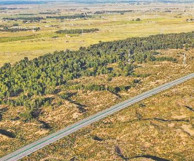 “十四五”時期,“三北”工程攻堅戰取得階段性成效。圖為內蒙古庫布其沙漠北緣鎖邊林帶。新華社記者 李志鵬攝