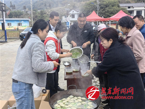 在廣場邊的臨時爐灶上,村“四支隊伍”人員分工協作,一起為老人們包著餃子。當熱氣騰騰的餃子端上桌,老人們的臉上洋溢著幸福笑容。餐后的政策宣講環節干貨滿滿,村工作人員用通俗語言講解城鄉合作醫療收繳標準與報銷流程,結合老年群體常見病種舉例說明,現場為3位老人完成繳費登記。