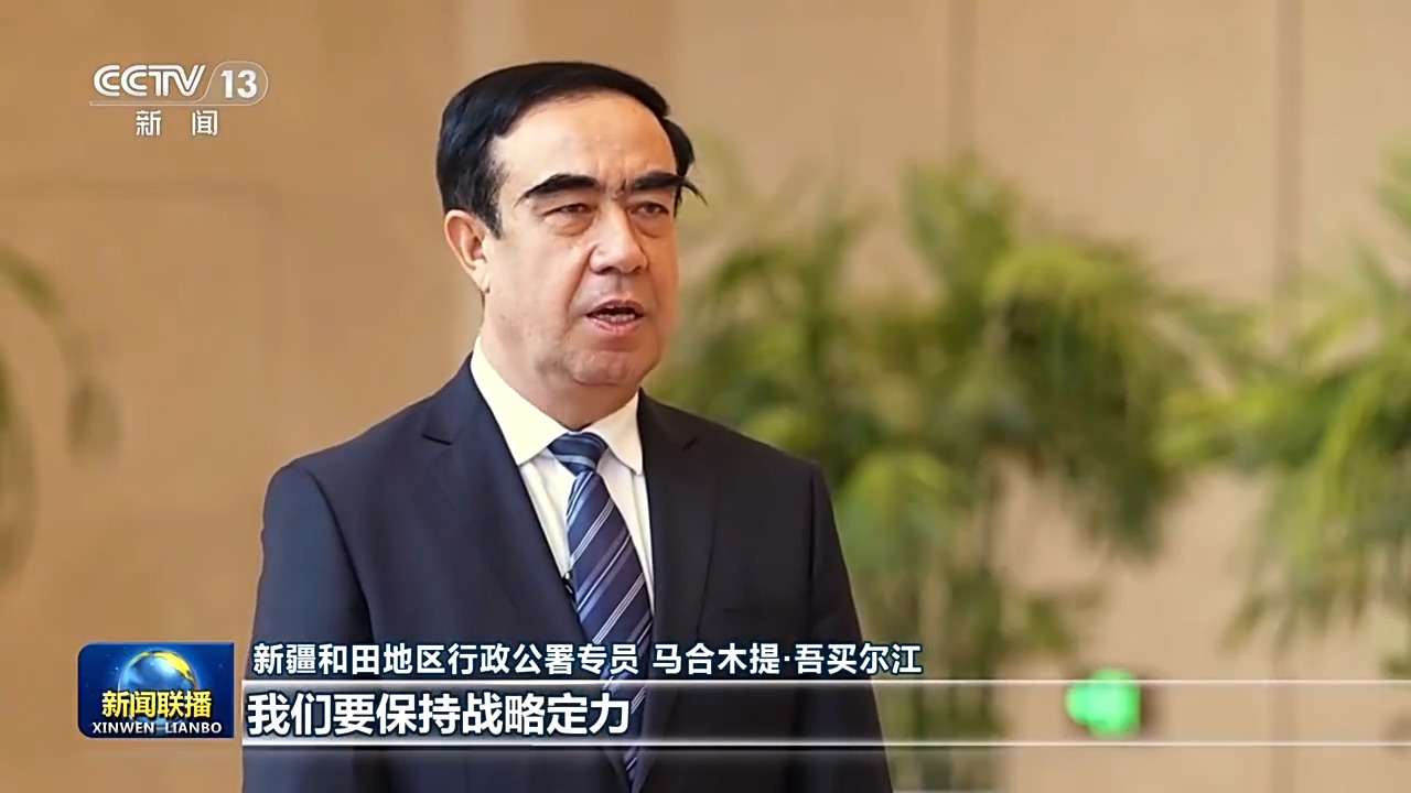 新疆和田地區行政公署專員 馬合木提·吾買爾江:習近平總書記的重要講話鼓舞人心、催人奮進。我們要保持戰略定力,增強必勝信心,依托資源稟賦和產業優勢,做大做強有機果蔬、新能源、防沙治沙及全域旅游等產業,在發展經濟的同時穩步提高人民生活品質,為推進中國式現代化新疆實踐貢獻力量